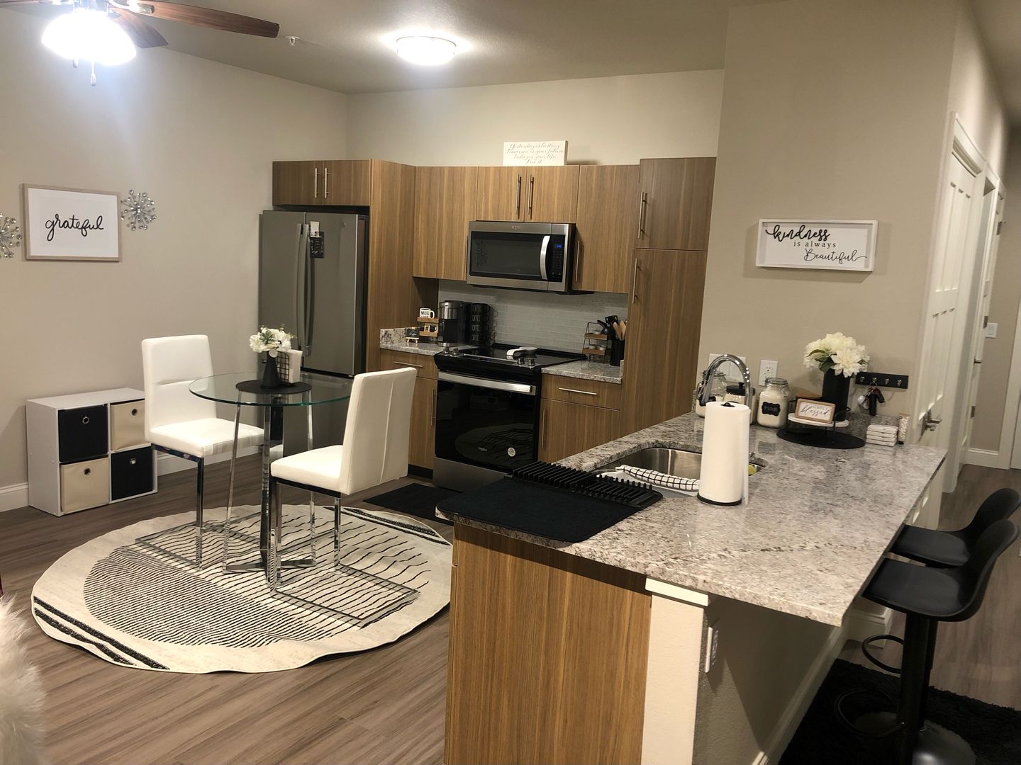 Welcome to Village At Fox River! A luxury community located at the intersection of Hwy 59 & Hwy 18 in Waukesha, WI. Each beautifully appointed apartment home showcases high-end finishes, open concept floor plans, natural tones, and finishes. It’s all in the details. Featuring granite counter tops, luxury vinyl plank flooring, designer kitchens/baths, tile back splashes, high-end appliances, and more. Cozy up in front of the fireplace or enjoy the scenery from your patio/balcony. Common hallways are extra-wide, featuring upgraded lighting and recessed doorways.