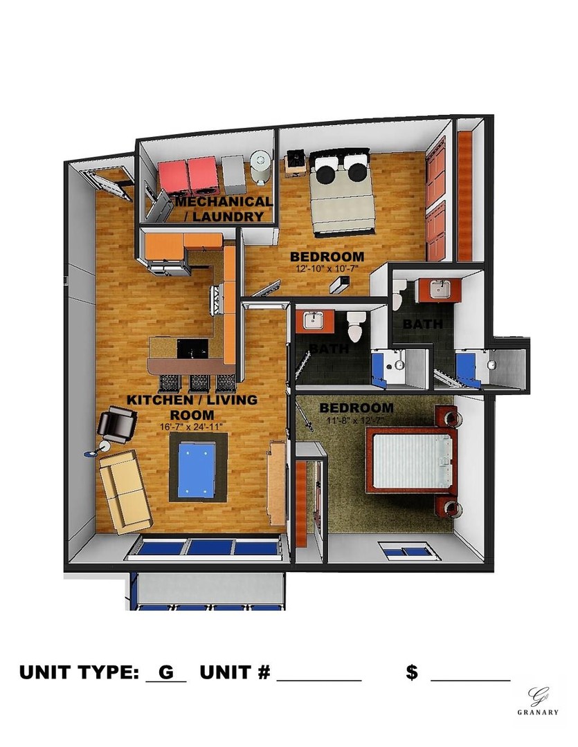Here at Granary Walker’s Point, we’ve spared no cost to create an apartment you can call home! Enjoy high-end interior finishes and amenities including; stainless steel appliances, wood cabinets, granite counters, in-unit washer and dryer, and even upgraded acoustic floors and walls. You’ll notice the difference before you even step foot into your apartment. A stunning community room features a cozy fireplace, gathering area, outdoor space and kitchen perfect for entertaining. Our well-appointed fitness center is perfect for your morning workout routine. Spend your nights and weekends relaxing on the rooftop deck, soaking in the sun and the beautiful skyline and river views. This is the place you’ve been searching for!